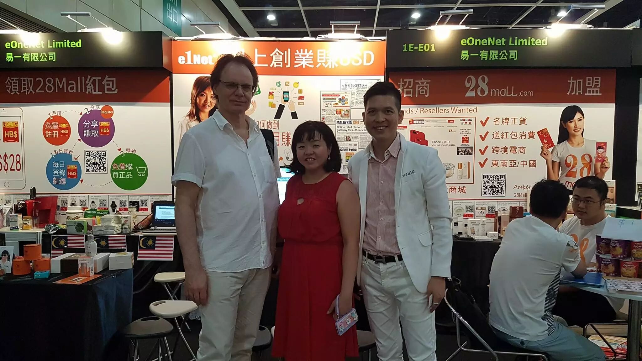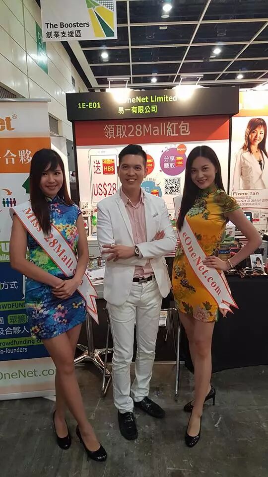 28Mall 創辦人兼亞太區總裁劉學聰先生與美麗的28Mall 在「創業日」大派紅包!到訪展位 Hall 1E-E01 即獲贈28Mall 電子購物現金紅包,高達 28 美元!