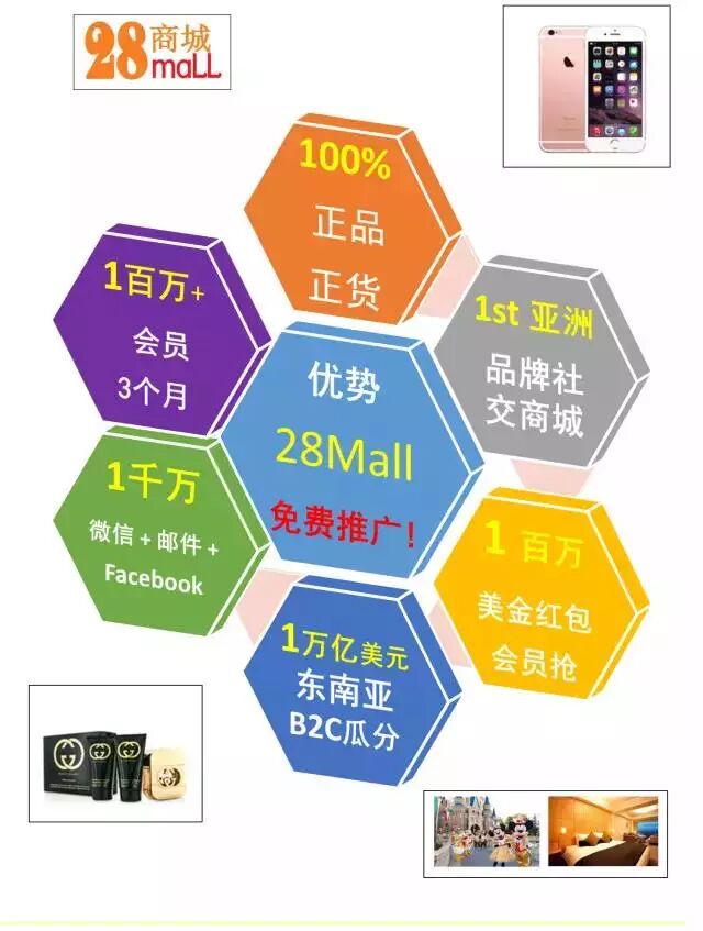 28Mall 是亞洲100%正品名牌國際網購商城,由亞洲領先互聯網行銷公司eOneNet 精心策劃,與其他網上商城不同,此為首個亞洲品牌社交網上商城透過社交網路送出電子消費紅包,送錢給消費者在商城購物。商城定位為中高端檔次,並保證100%產品均為正品正貨。